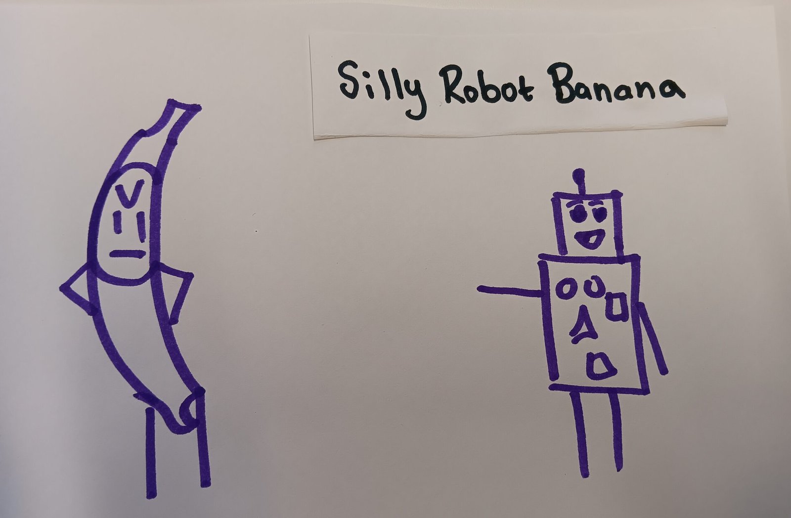 Robot laughing at person in a silly banana costume